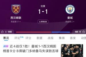 你想到了嗎?一個(gè)月前曼城1-1西漢姆落后9分,此后兩輪凈追6分!