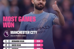 214場!曼城球員英超勝場數(shù):B席追平大衛(wèi)·席爾瓦并列隊史榜首