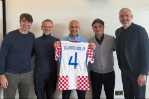 隨達(dá)利奇一同造訪曼徹斯特的還有技術(shù)總監(jiān)普萊蒂科薩以及教練組成員喬爾盧卡、盧卡·米蘭諾維奇,代表團(tuán)向瓜迪奧拉贈送了一件其專屬的克羅地亞國家隊(duì)4號球衣以及一副定制的國際象棋。