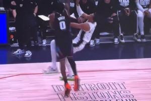 GIF-活塞給文班上的對抗相當足 文班摔了好幾次