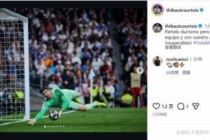 皇馬門將庫(kù)爾圖瓦社媒曬出撲救的照片,慶祝球隊(duì)晉級(jí),配文:“這是一場(chǎng)極其艱難的比賽,但只要我們團(tuán)結(jié)一致,加上你們的支持,我們就是不可戰(zhàn)勝的!”