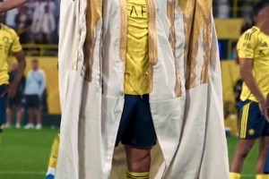 上一篇: 特殊裝扮!沙特建國日,C羅帶隊取勝后身著沙特傳統(tǒng)金色長袍謝場